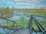 2011Dit werk geeft een wijds uitzicht over het Lorregat richting de molen in 's-Gravendeel. De wolkenpartij met de veren en de vliegtuigsporen zijn zeer realistisch.