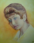 2007Mijn oma geschilderd van een klein zwart-wit fotootje ca. 1930 niet te koop