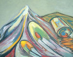 2006Onstaan uit een stilleven van een bordje, glas en een doek. Als vrij werk op deze manier weer vormgegeven.
