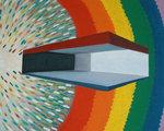 2007Licht bestaat uit de kleurenwaaier van de regenboog. Alle kleuren komen weer samen in de lichte vlek Dit is de achtergrong voor een perspectief van bijvoorbeeld een stand van een beurs