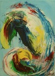 2012Vrolijk abstract schilderij met heel veel kleur. Er is een kop in te zien.