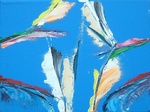 Abstract en onwaar. Diverse werken uitgevoerd met als doel, het beleven van een gevoel van euforie als het werk af is. Alleen het samenspel van kleuren vorm en compositie maken het werk tot wat het is en is daarmee ook onwaar.